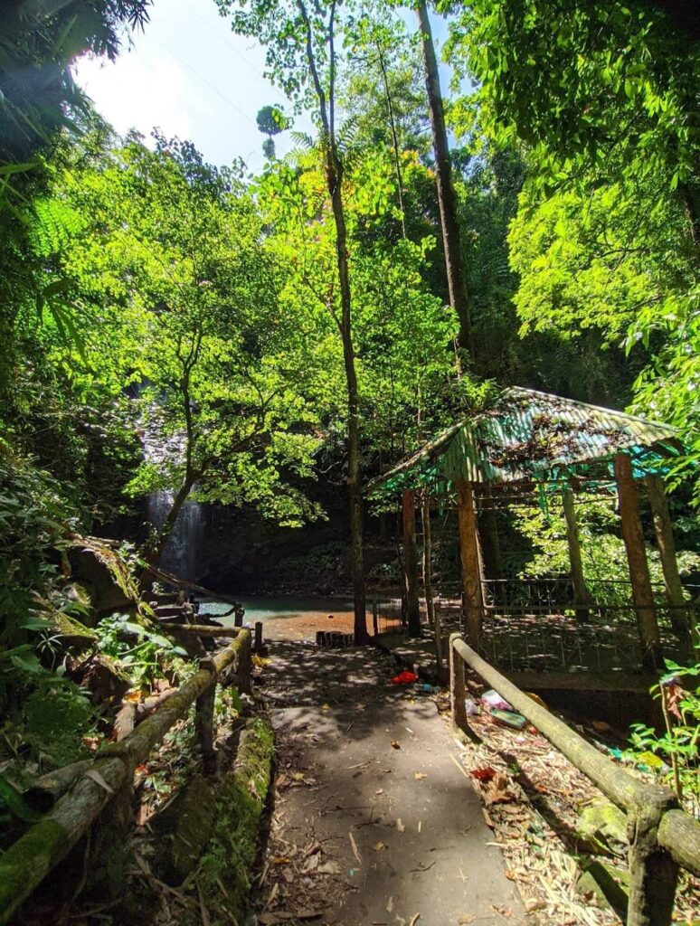 Reaching Manga Falls involves a short hike through the forest making it accessible for families and casual hikers. The surrounding area is equipped with basic amenities including a gazebo for resting and enjoying packed meals. While the falls are relatively easy to access, visitors are encouraged to bring mosquito repellent and a trash bag to help preserve the natural beauty of the site.