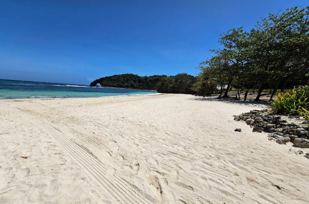 During high tide, waves crash dramatically onto the rocks, creating foamy white sprays. At low tide, the beach reveals tidal pools where small sea creatures can be seen scuttling about adding to the simple joys of exploration. Visitors can explore nearby limestone caves with a local guide or enjoy kayaking along the coastline for a more adventurous touch.
